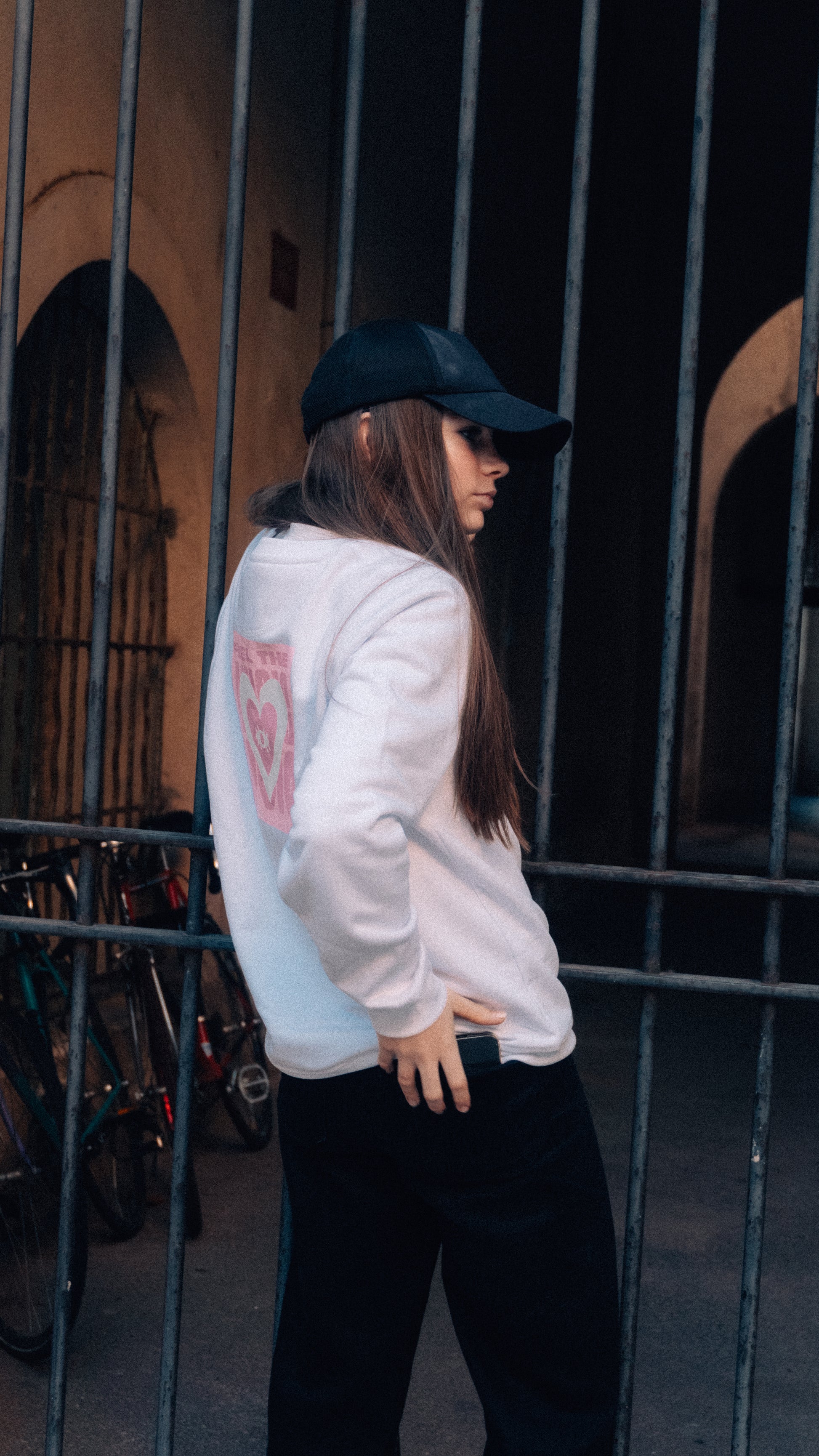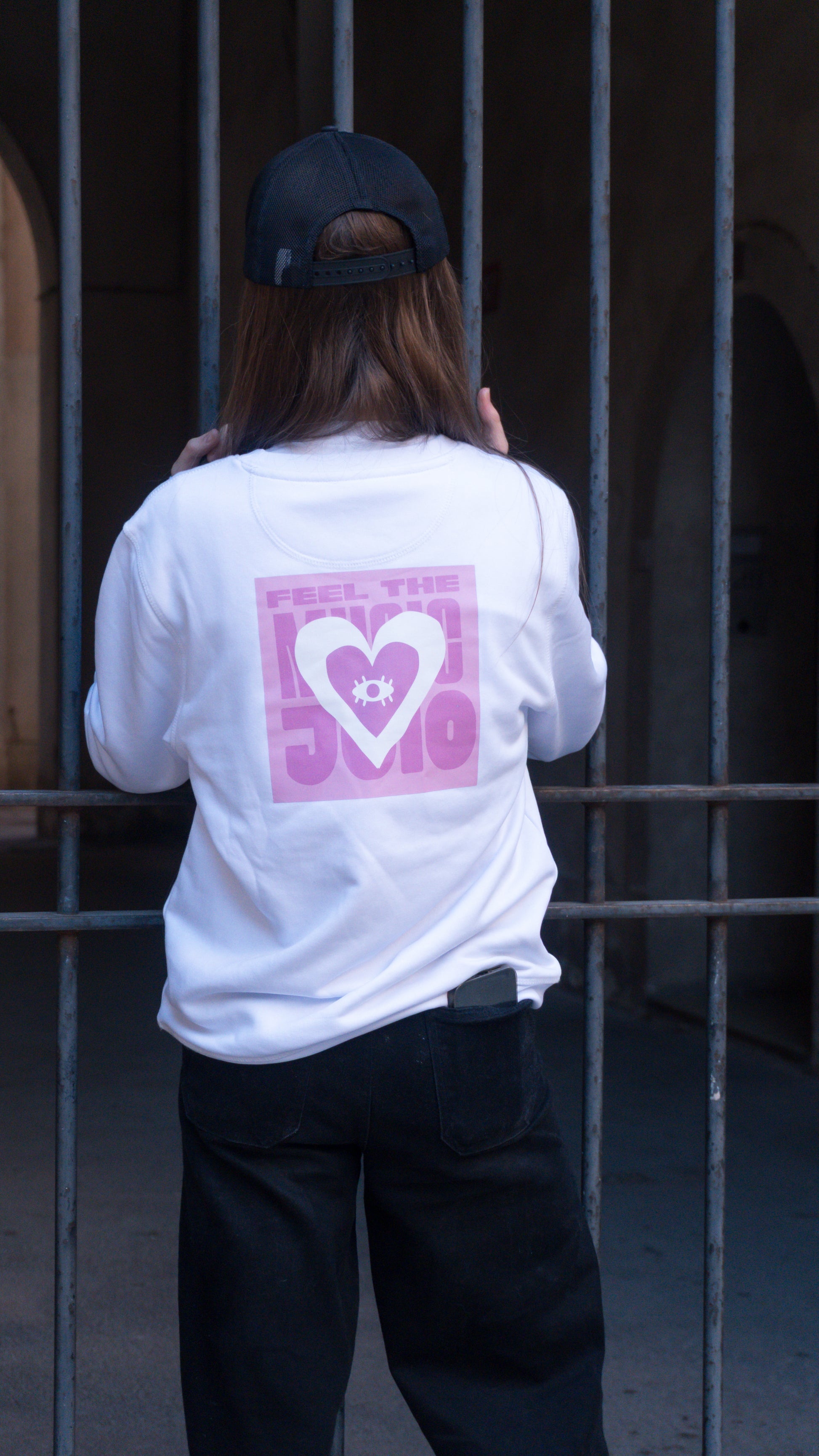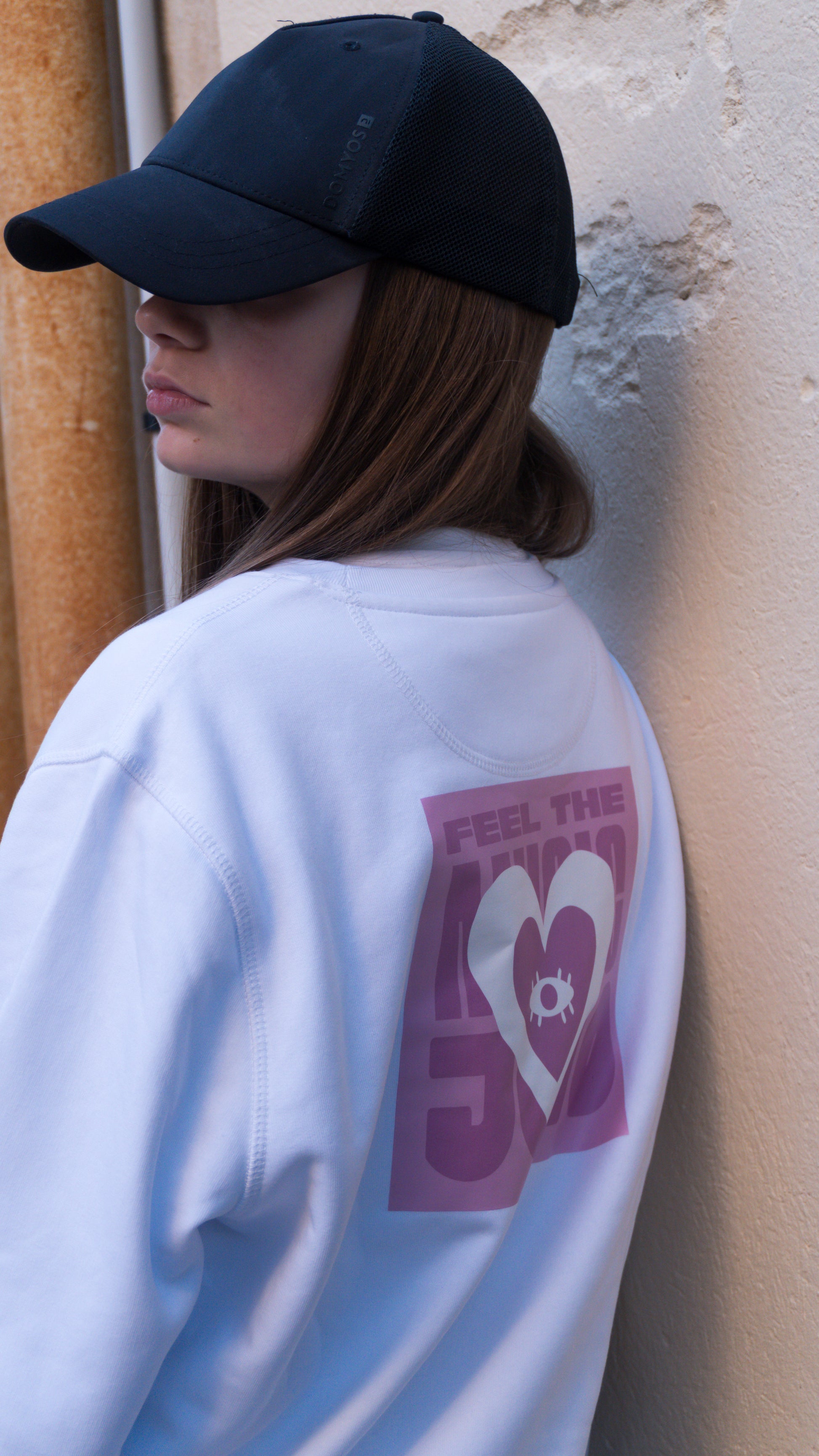 Un sweat doux, clean et solaire, fait pour ceux qui écoutent la musique comme un mood, pas comme un bruit de fond.